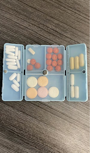 🌸 This little pill organizer is made to bring you peace of mind every day. 💊 With easy-to-open compartments and a compact design, it helps keep your vitamins and medicine neatly in place—whether you’re at home 🏡 or on a short trip ✈️.